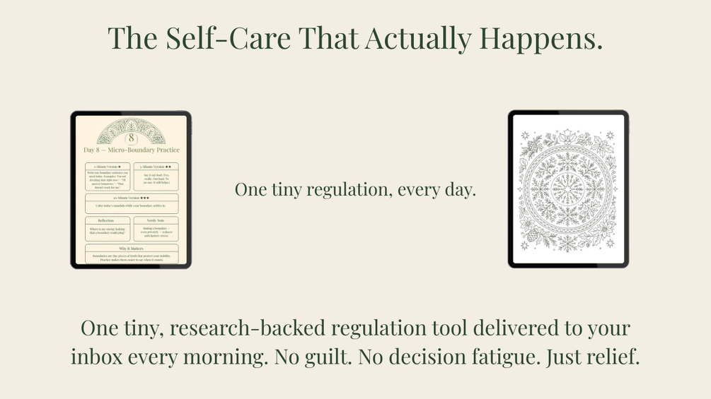 Daily Tend is self-care without the self-management: tiny, research-backed regulation practices delivered to your inbox—made for overloaded humans, neurodivergent brains, and anyone living in “too much” mode.